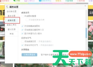在“属性设置”对话框中,找到并选择左侧窗格的“桌面设置”选项。这个选项通常包含了与桌面壁纸、日历、天气等相关的设置。