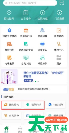 1、下载“掌上同济”app,或关注同济医院公众号,打开“智慧医疗”。