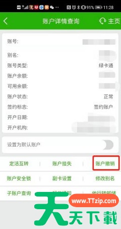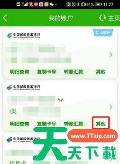 首先在手机上打开中国邮政储蓄银行手机银行,在首页找到【我的账户】。 点击进入我的账户界面,找到要注销的银行卡,选择下方的【其他】。 点击其他进入账户详情查询界面,找到【账户撤销】。 点击账户撤销弹出认证方式对话窗口,输入交易密码即可完成注销。 @天天资源网TTzip 除特别注明外,本站所有文章均为 天天下载 原创,转载请注明出处来自 https://www.ttzip.com/210746.html