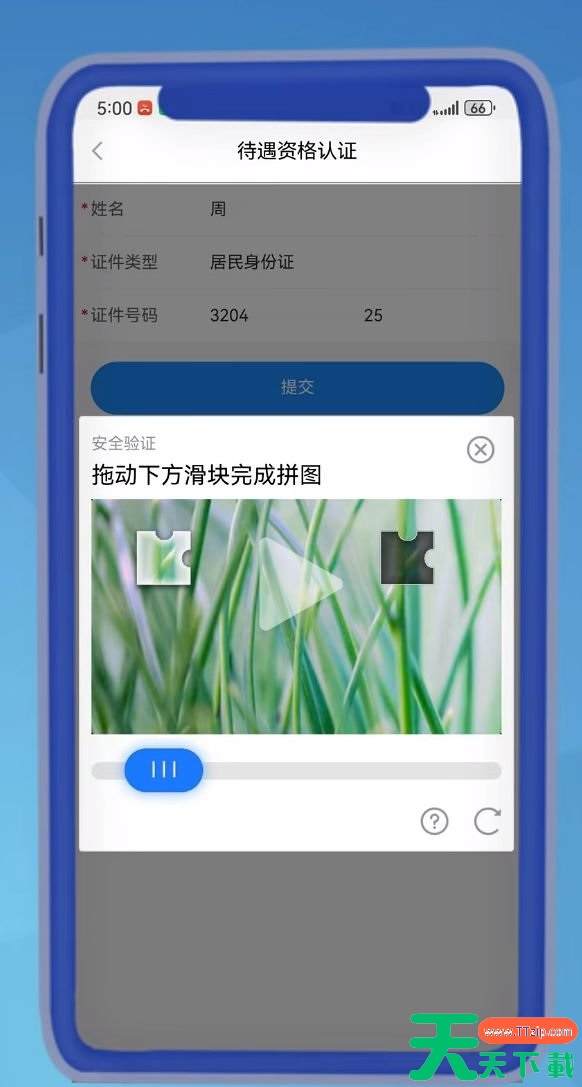5、输入姓名和身份证号码,点击“提交”,根据提示完成安全验证。
