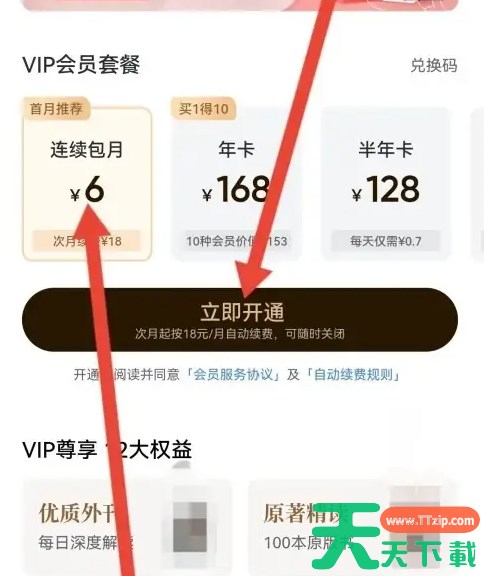 进入我的会员,然后选择套餐,再点击【立即开通】。