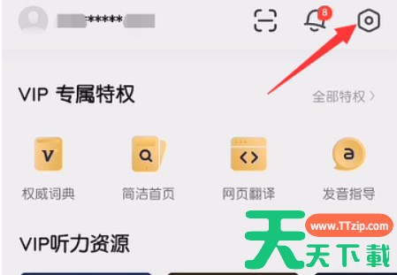 第一步:打开有道词典后,点击屏幕底部“会员”图标。 第二步:进入我的账户页面,点击顶部右侧的六角形图标。 第三步:打开设置页面,点击“开启词典工具栏”滑块开关。 以上就是有道词典关闭词典工具栏的方法的详细内容,希望对您有所帮助。 除特别注明外,本站所有文章均为 天天下载 原创,转载请注明出处来自 https://www.ttzip.com/210778.html