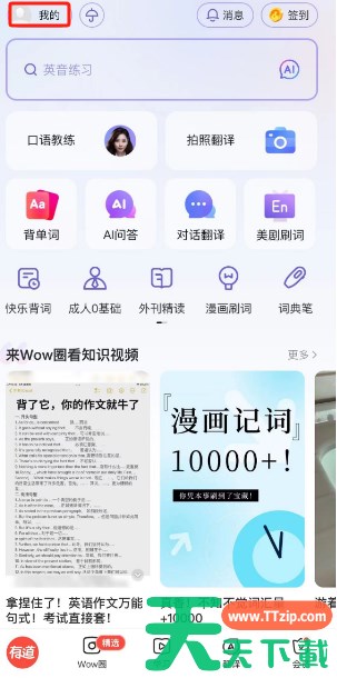 1、首先打开网易有道词典APP,进入首页以后选择左上角的我的。