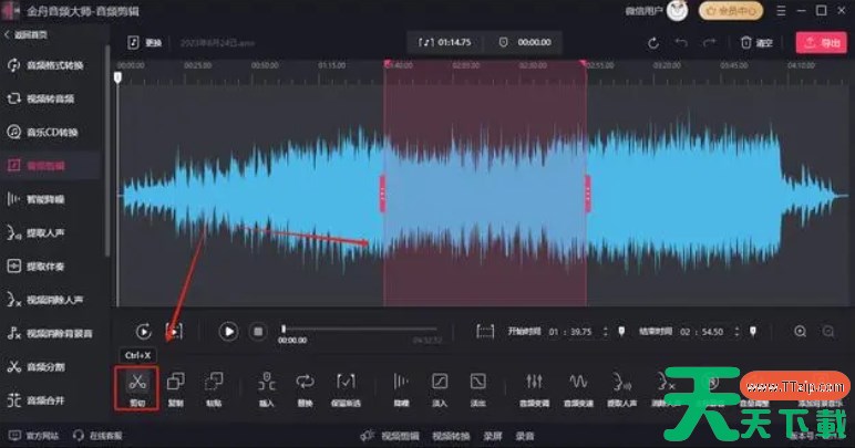 金舟音频大师是一款多功能的音乐音频转换软件,那么金舟音频大师怎么剪切音频?金舟音频大师剪切音频的方法?下面就让天天下载Ttzip给大家解答下吧! 金舟音频大师怎么剪切音频? 1、打开金舟音频大师软件,点击“音频剪辑”功能。 2、在软件界面上,拖动两侧的红色时间轴选中需要保留或删除的音频片段,然后点击“剪切”按钮将其移除。 3、在剪辑完成后,可以设置导出的音频格式、质量、声道等参数,最后点击“导出”按钮即可完成。 以上就是天天下载Ttzip为您整理的金舟音频大师怎么剪切音频?金舟音频大师剪切音频的方法啦,希望能帮到您。 除特别注明外,本站所有文章均为 天天下载 原创,转载请注明出处来自 https://www.ttzip.com/210794.html