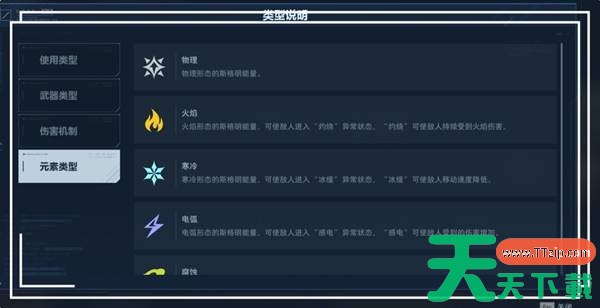 元素类型,所有元素类型能适配大多数环境,不用根据地图选择,萌新入门可以直接选择物理伤害。