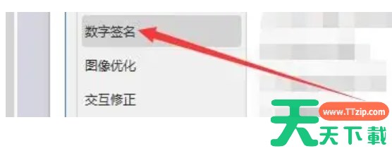 2、在首选项设置界面中,点击“数字签名”选项。
