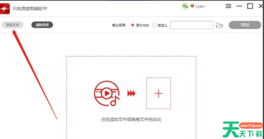 1、打开闪电音频剪辑软件,点击左上角的“添加文件”按钮,导入需要处理的音频文件。