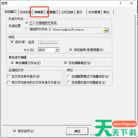 2、在打开的窗口界面中,点击上方中的"缩略图"选项卡。