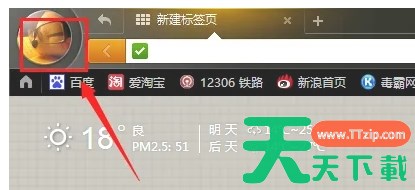 点击浏览器界面最左上角的“头像”图标,进入浏览器的个人中心或设置区域。