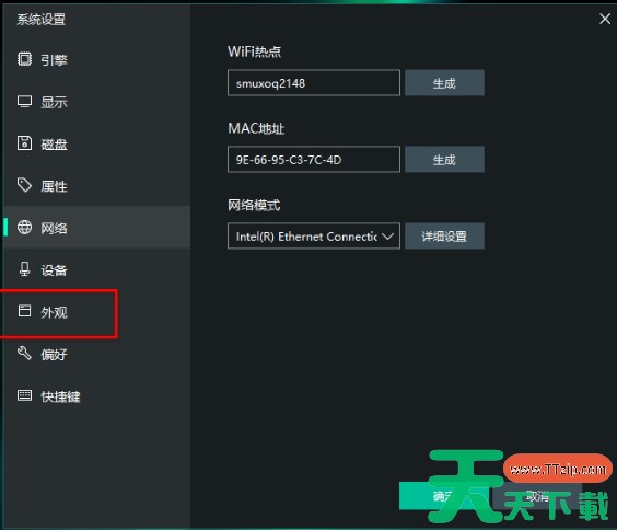 2、在打开的窗口界面中,点击左侧栏中的外观选项。