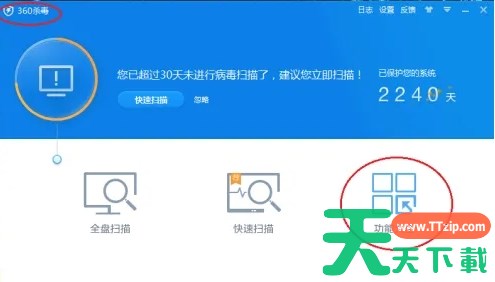 在360杀毒的主界面,找到并点击“功能大全”或类似的选项。这通常会显示在主界面的某个角落,具体位置可能因版本而异。