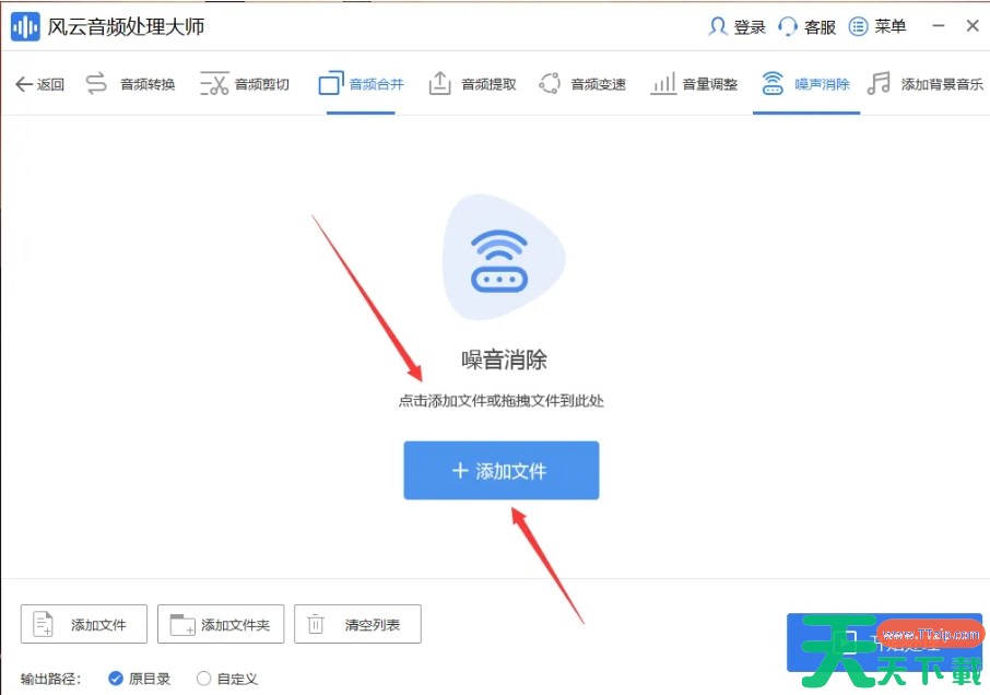 2、在“噪声消除”功能界面中,点击“添加文件”按钮。