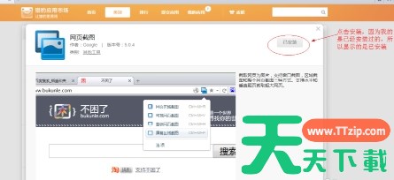 点击“网页截图”插件的条目,进入其详情页面。在详情页面的右上角,找到并点击“安装”按钮以开始安装插件。
