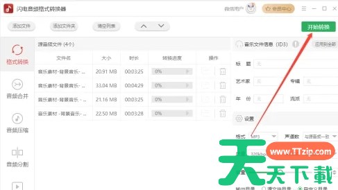 以上就是天天下载Ttzip为你整理的闪电音频格式转换器kgm怎么转mp3以及闪电音频格式转换器kgm转mp3的方法啦,希望能帮到您!
