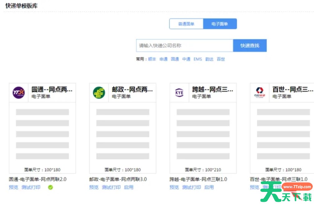以上就是天天下载Ttzip为您整理的快递100电脑版怎么打印电子面单?快递100电脑版打印电子面单的操作流程啦,希望能帮到您。
