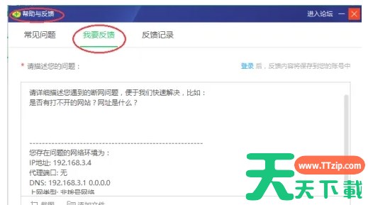 以上就是天天下载Ttzip为你整理的360断网急救箱怎么进行反馈以及360断网急救箱进行反馈的方法啦,希望能帮到您!