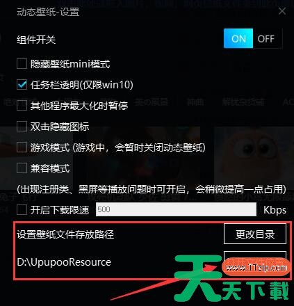 2、在打开的窗口界面中,知道其中的"设置壁纸文件的存放路径"一栏,并点击"打开文件位置"按钮。