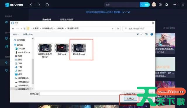 二、在弹出的文件夹中选择要上传的壁纸视频,点击“打开”。