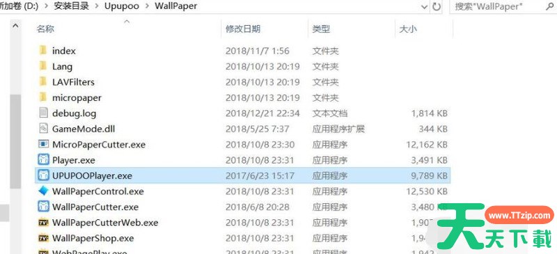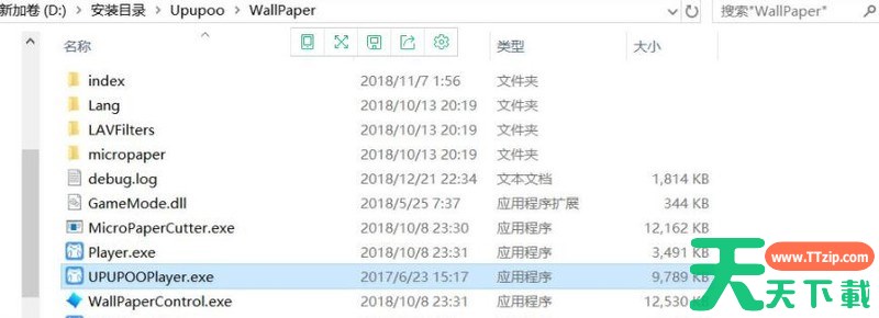 先找到upupoo的视频播放器upupooPlayer.exe,如图,在upupoo根目录下的WallPaper下面。