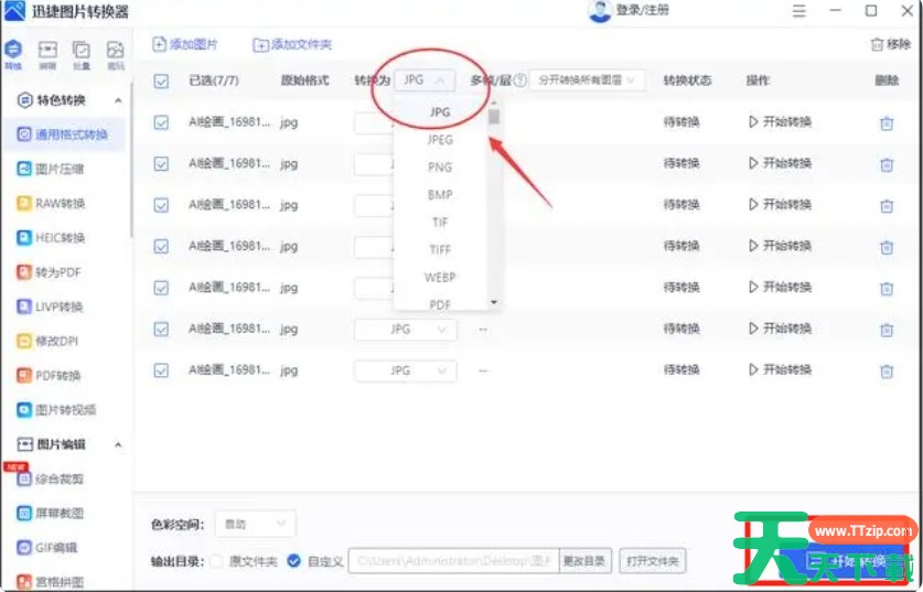 迅捷图片转换器是一款能都快速批量转换图片格式的实用型图片处理软件,那么迅捷图片转换器怎么转换格式?迅捷图片转换器转换格式的方法?下面就让天天下载Ttzip给大家解答下吧! 迅捷图片转换器怎么转换格式? 1、打开迅捷图片转换器,在软件界面上,点击“通用格式转换”功能,点击“添加文件”按钮,在弹出的文件选择对话框中,选择要转换格式的图片文件。 2、在格式选择列表中,选择想要转换成的图片格式,如JPG、PNG、BMP等,然后再点击“开始转换”即可。 以上就是天天下载Ttzip为您整理的迅捷图片转换器怎么转换格式?迅捷图片转换器转换格式的方法啦,希望能帮到您。 除特别注明外,本站所有文章均为 天天下载 原创,转载请注明出处来自 https://www.ttzip.com/210966.html
