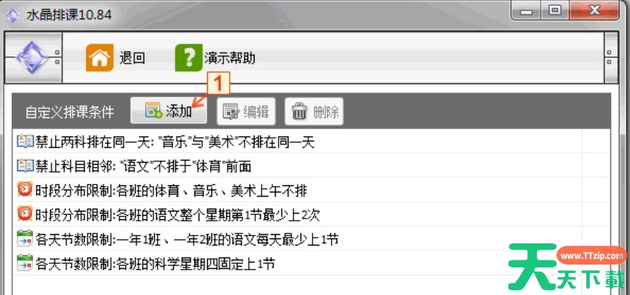 水晶排课是一款便捷实用的排课软件,那么水晶排课怎么设置每天一节语文?水晶排课设置每天一节语文的方法?下面就让天天下载Ttzip给大家解答下吧!