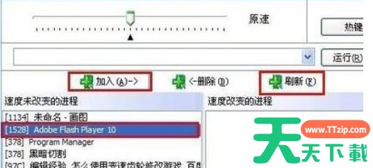 找到游戏进程后,双击该条目,或者选中它后点击“加入”,将其添加到“速度改变的进程”列表中。