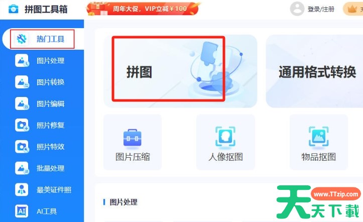 迅捷图片格式转换器支持PNG、JPG、JPEG、BMP、GIF等常用图片格式相互转换,同时支持将苹果HEIC格式图片转换成JPG格式,可实现图片无损批量转换,是一款简单好用的图片格式转换工具。那么迅捷图片转换器怎么拼图?迅捷图片转换器拼图的方法?下面就让天天下载Ttzip给大家解答下吧! 迅捷图片转换器怎么拼图? 1、在软件的主界面中,找到并点击“拼图”功能选项。 2、点击“添加图片”按钮,选择需要拼接的图片文件。 3、点击“布局”按钮,可以选择不同的拼图模板和布局样式。根据图片数量和拼接需求,选择合适的布局即可。 以上就是天天下载Ttzip为您整理的迅捷图片转换器怎么拼图?迅捷图片转换器拼图的方法程啦,希望能帮到您。 除特别注明外,本站所有文章均为 天天下载 原创,转载请注明出处来自 https://www.ttzip.com/210990.html