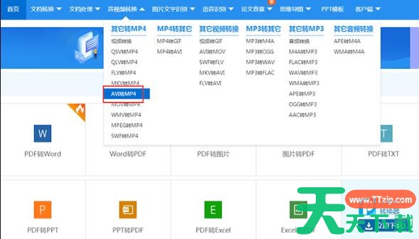1、搜索进入迅捷PDF在线转换器平台,在首页点击【音视频转换】——【AVI转MP4】,进入操作界面。