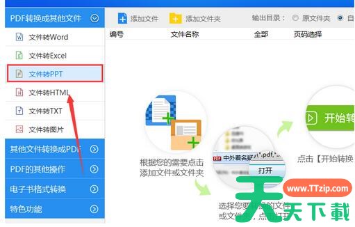1、打开迅捷PDF转换器,点击界面左侧的【PDF转换成其他文件】选项,因为需将PDF文件转换成PPT幻灯片,所以选择里面的【文件转PPT】功能进行转换。