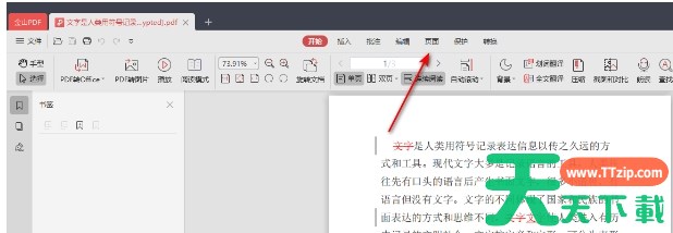 点击页面上方的【页面】选项卡,这是进行页面管理(如删除、插入、旋转等)的主要入口。