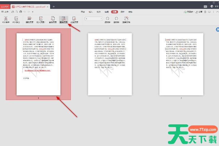 金山pdf是一款界面简洁友好,操作便捷的软件,无论是PDF文件的阅读还是编辑都能得到良好的体验。它支持多种操作系统平台(如Windows、macOS等),满足不同用户的需求。同时,金山pdf还提供了丰富的在线资源和社区支持,帮助用户解决在使用过程中遇到的问题。接下来就让天天下载Ttzip为大家解答一下金山pdf怎么删除其中一页以及金山pdf删除其中一页的方法吧!