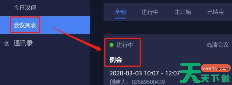 选择进行中的会议:在会议列表中,找到并点击您想要控制的进行中的会议。