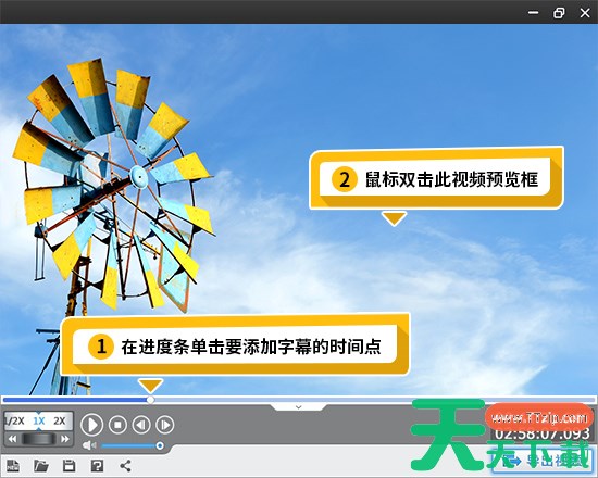 1、在主界面点击“字幕特效”选项卡,在右上角视频预览框时间进度条上,单击要添加字幕特效的时间点,将时间进度条定位到要添加字幕特效处。