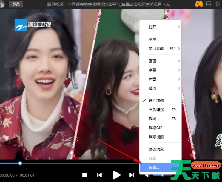 3.之后,我们在迅雷影音播放页面上进行右键一下,即可弹出一个设置菜单选项,将【设置】选项进行点击进入即可。