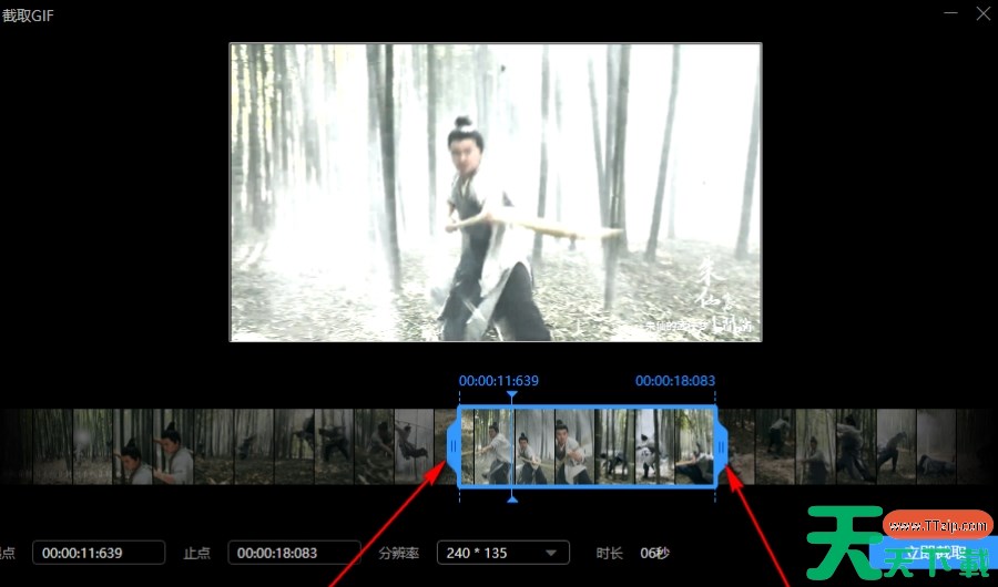 3.进入到截取页面后,用鼠标拖动一下时间轴,左右滑动时间轴进行截取。