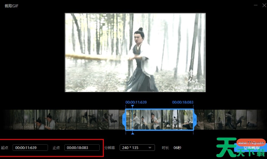 4.然后在下方的【起点】和【止点】也可以输入具体的截取时间。