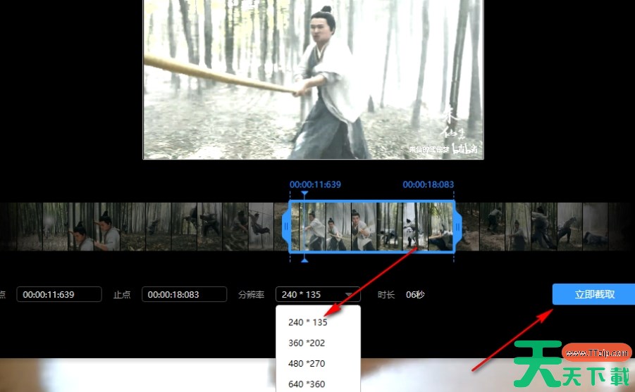 5.将【分辨率】下拉按钮点击打开,选择合适的分辨率,并点击【立即截取】按钮即可截取。