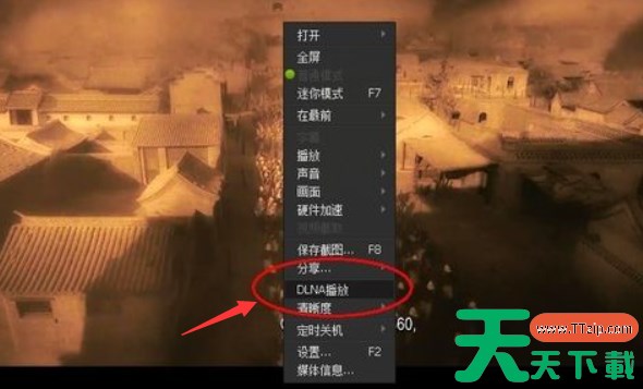 第二步:在页面上任意专位置右击鼠标,选择DLNA播放选项。
