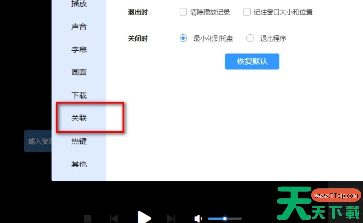 2.之后,我们就可以进入到迅雷影音的设置页面中了,将该页面左侧的【关联】选项进行点击。