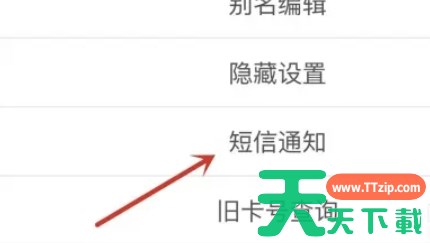 在银行卡详情页面中,找到“短信通知”或类似的选项,点击进入短信通知管理界面。