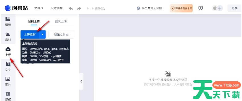 创客贴是一款全能好用的图片编辑器和视频剪辑工具,那么创客贴怎么导入图片?创客贴导入图片的方法?下面就让天天下载Ttzip给大家解答下吧! 创客贴怎么导入图片? 1、打开创客贴软件,在创客贴的首页,找到并点击“上传图片”选项。 2、从你的电脑中选择你想要添加水印的图片,并点击“打开”将其上传到创客贴中即可。 以上就是天天下载Ttzip为您整理的创客贴怎么导入图片?创客贴导入图片的方法啦,希望能帮到您。 除特别注明外,本站所有文章均为 天天下载 原创,转载请注明出处来自 https://www.ttzip.com/211202.html