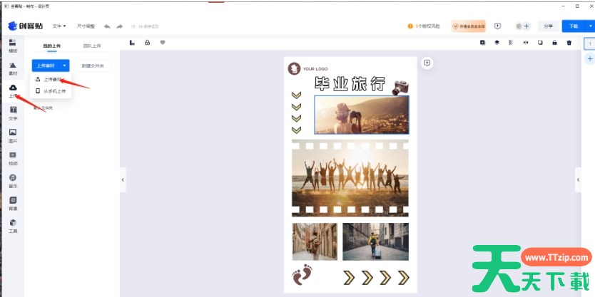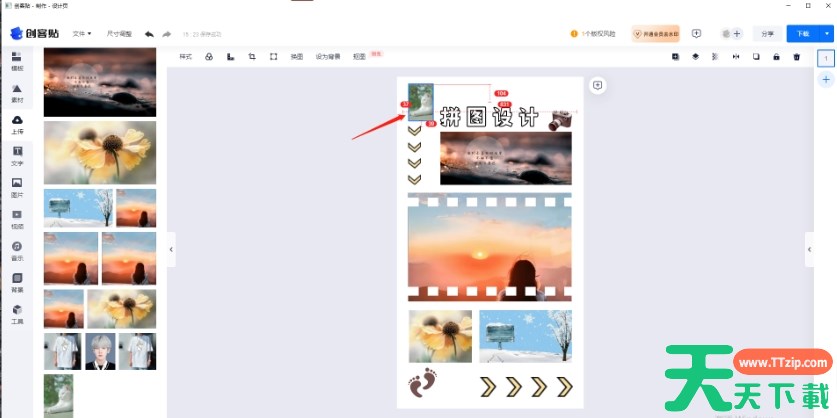 创客贴软件可以进行海报制作、一键抠图、视频剪辑等,那么创客贴怎么制作拼图?创客贴制作拼图的方法?下面就让天天下载Ttzip给大家解答下吧!