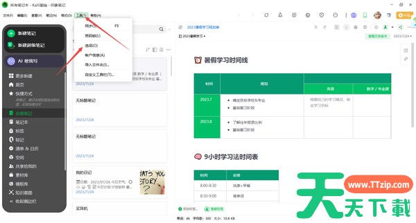 第一步:打开印象笔记进入主页,点击“工具”选项卡中的“选项”;