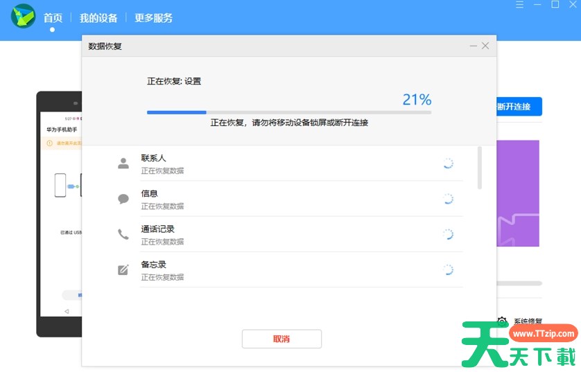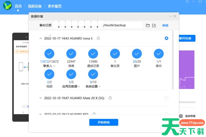 以上就是天天下载Ttzip为你整理的华为手机助手怎么恢复备份以及华为手机助手恢复备份的方法啦,希望能帮到您!