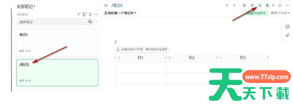 2、随后在窗口中找到想要分享出去的笔记,然后点击右上角的【分享】按钮;