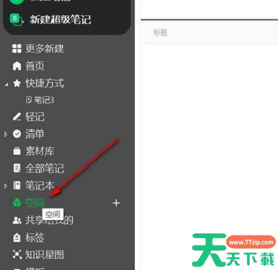 1、打开印象笔记,在软件主界面左侧找到【空间】分栏;