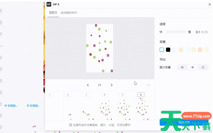 在插件中预览动图效果,调整速度、背景、图片质量等参数,直到满意为止。