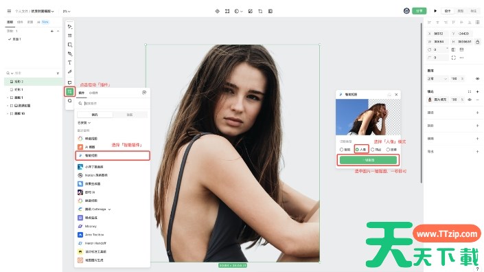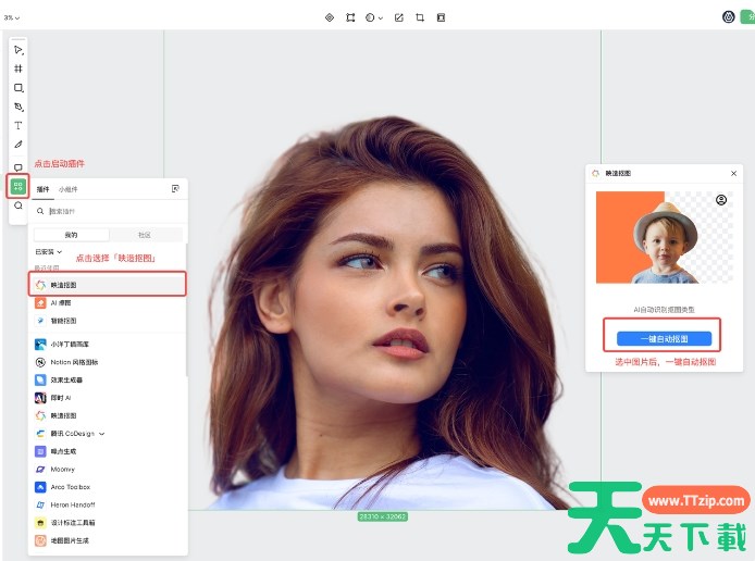 即时设计是一款非常专业的设计协作工具软件,那么即时设计怎么抠图?即时设计抠图的方法?下面就让天天下载Ttzip给大家解答下吧! 即时设计怎么抠图? 1、在即时设计的工具栏中安装“智能抠图插件”,然后将你想要抠图的图片导入到即时设计的工作台中。 2、然后点击“一键抠图”按钮,等待插件自动完成抠图过程即可。 以上就是天天下载Ttzip为您整理的即时设计怎么抠图?即时设计抠图的方法啦,希望能帮到您。 除特别注明外,本站所有文章均为 天天下载 原创,转载请注明出处来自 https://www.ttzip.com/211289.html