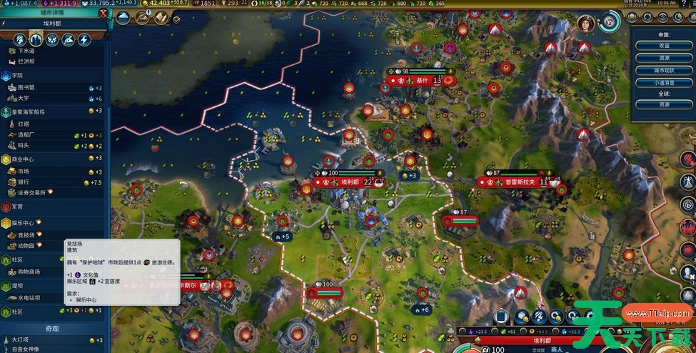 在文明六中一个城市的宜居度高低十分重要,因为它会影响到这个城市人口数量的增长速度。