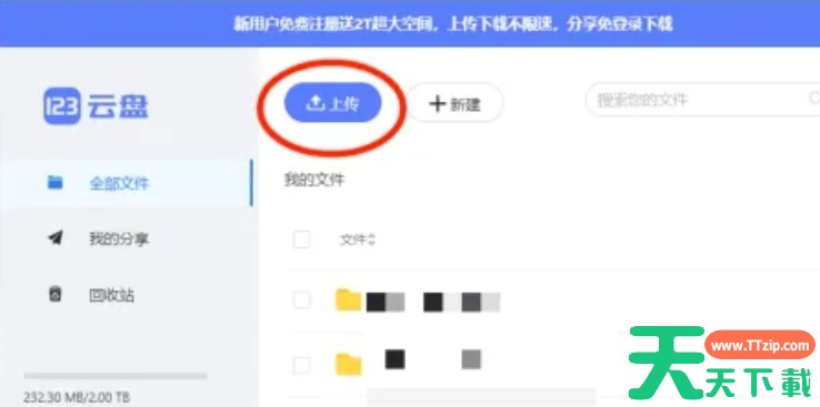 123云盘是一款功能强大、安全可靠的云存储服务软件,那么123云盘怎么上传文件?123云盘上传文件的方法?下面就让天天下载Ttzip给大家解答下吧! 123云盘怎么上传文件? 1、打开123云盘,在主界面上,找到并点击【上传】按钮。 2、点击【上传】按钮后,会弹出一个文件选择窗口。在这个窗口中,你可以浏览你的设备上的文件,并选择你想要上传到云盘的文件。 3、耐心等待上传即可。 以上就是天天下载Ttzip为您整理的123云盘怎么上传文件?123云盘上传文件的操作流程啦,希望能帮到您。 除特别注明外,本站所有文章均为 天天下载 原创,转载请注明出处来自 https://www.ttzip.com/211310.html